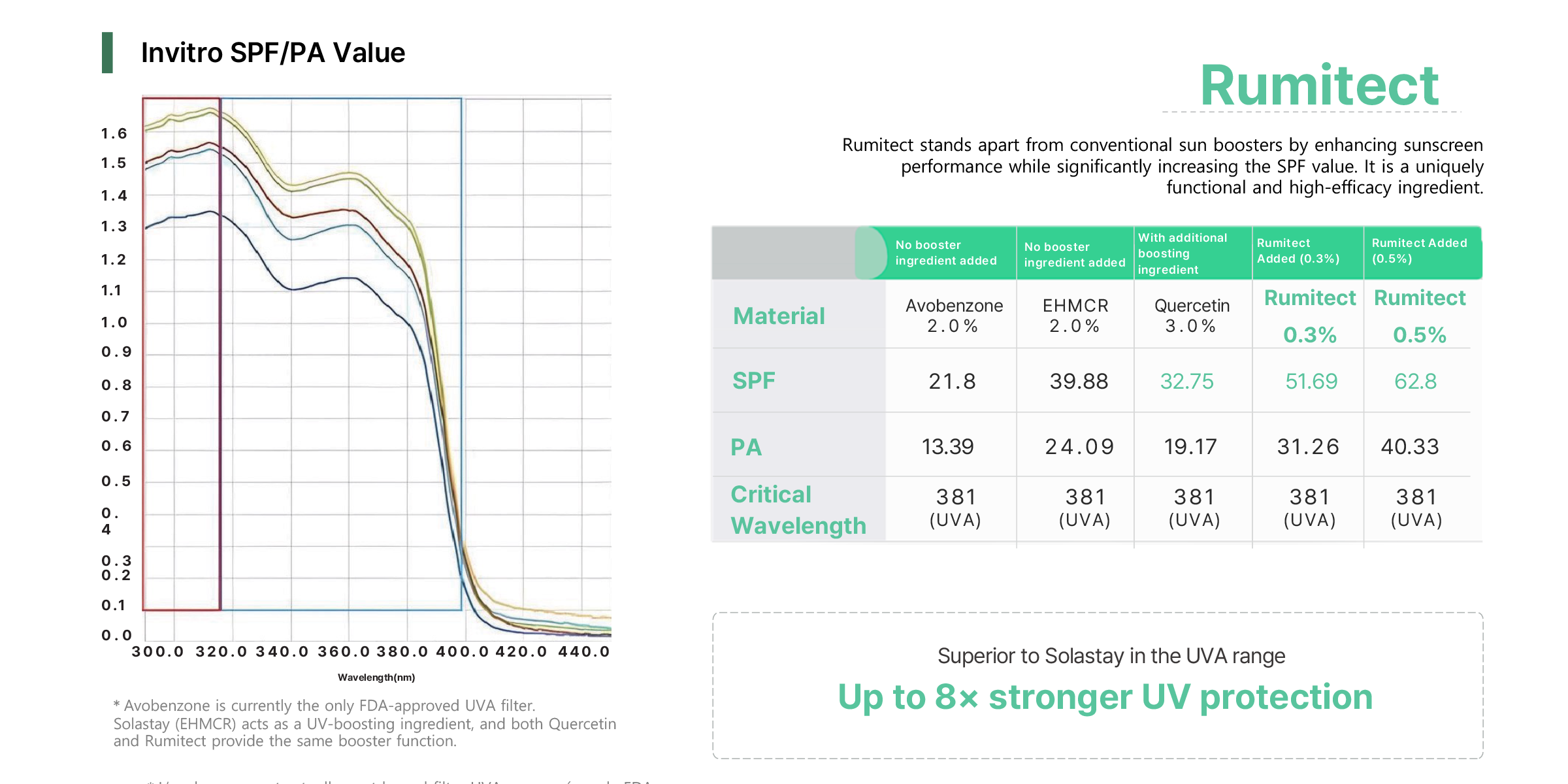- UV protection efficiency boosting material